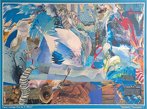 The self-taught Balu sort of backed into the art world. He had written some stories for the Indian Express, which did not have an artist to illustrate them. The paper asked him to illustrate them himself, which he did. He became more deeply involved in using art for communication and 35 years ago began producing collages.