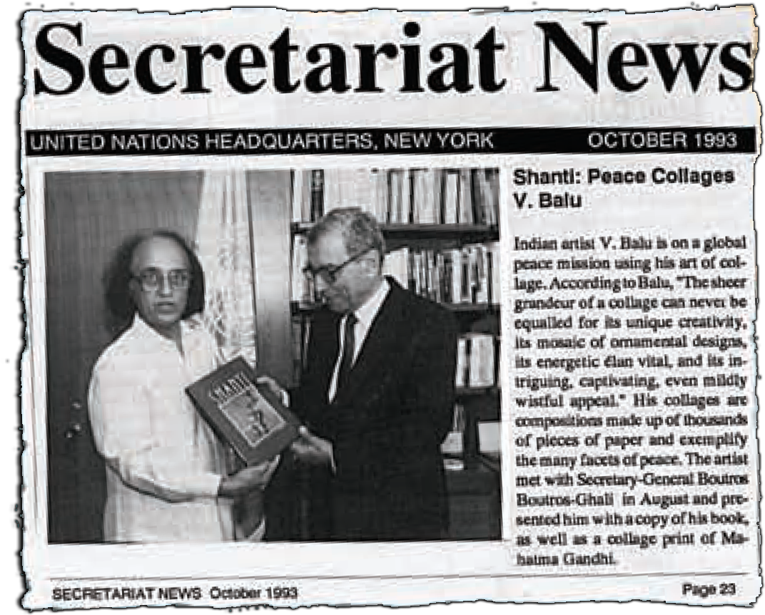 Dr. V. BALU (Venkatraman BALU) was a creative communicator based in Bangalore, India. As an artist, he started off with cartoons and oil paintings. However, for over four decades, his main medium has been paper collages. In addition, he was a writer who has authored books and numerous articles.